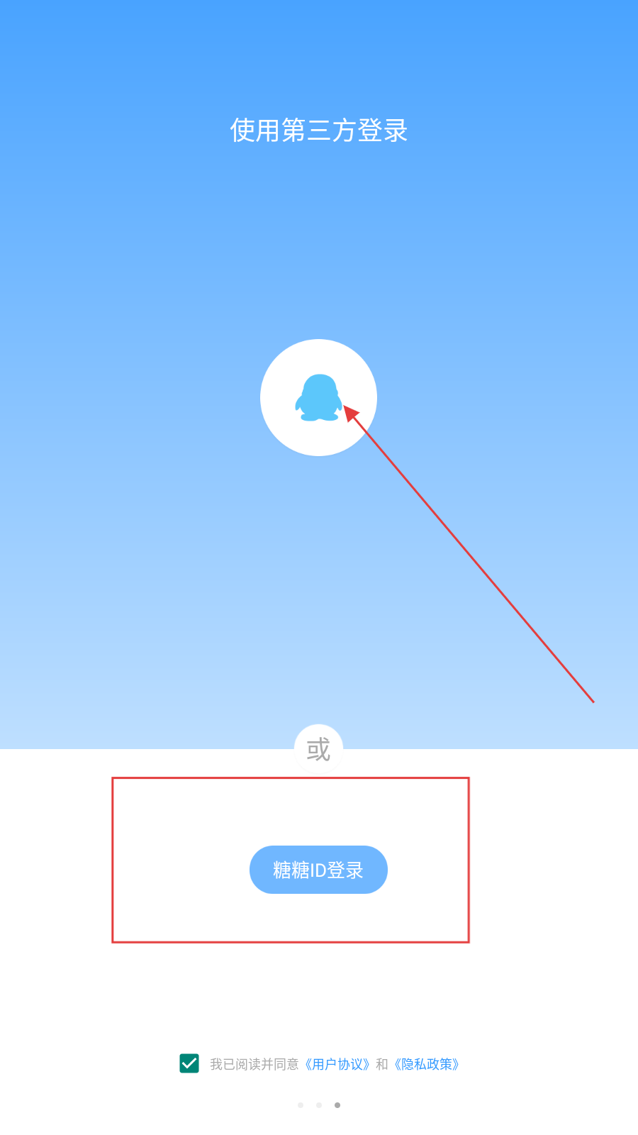 2、在登录页,可选第三方(如QQ样式图标)或【糖糖ID登录】,选前者按指引授权登录。