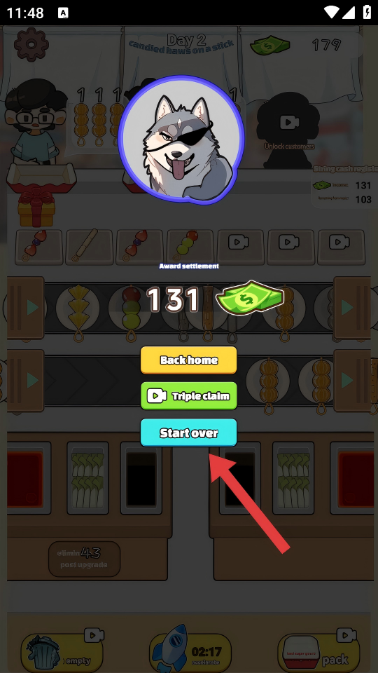 4、关卡结束出现结算界面,查看获得的金钱,点击【Start-over】按钮,可重新开始当前关卡挑战。
