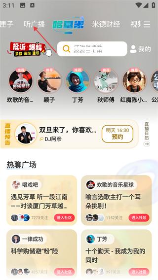 1、打开【阿基米德软件】,点击顶部【听广播】标签,进入广播相关界面。