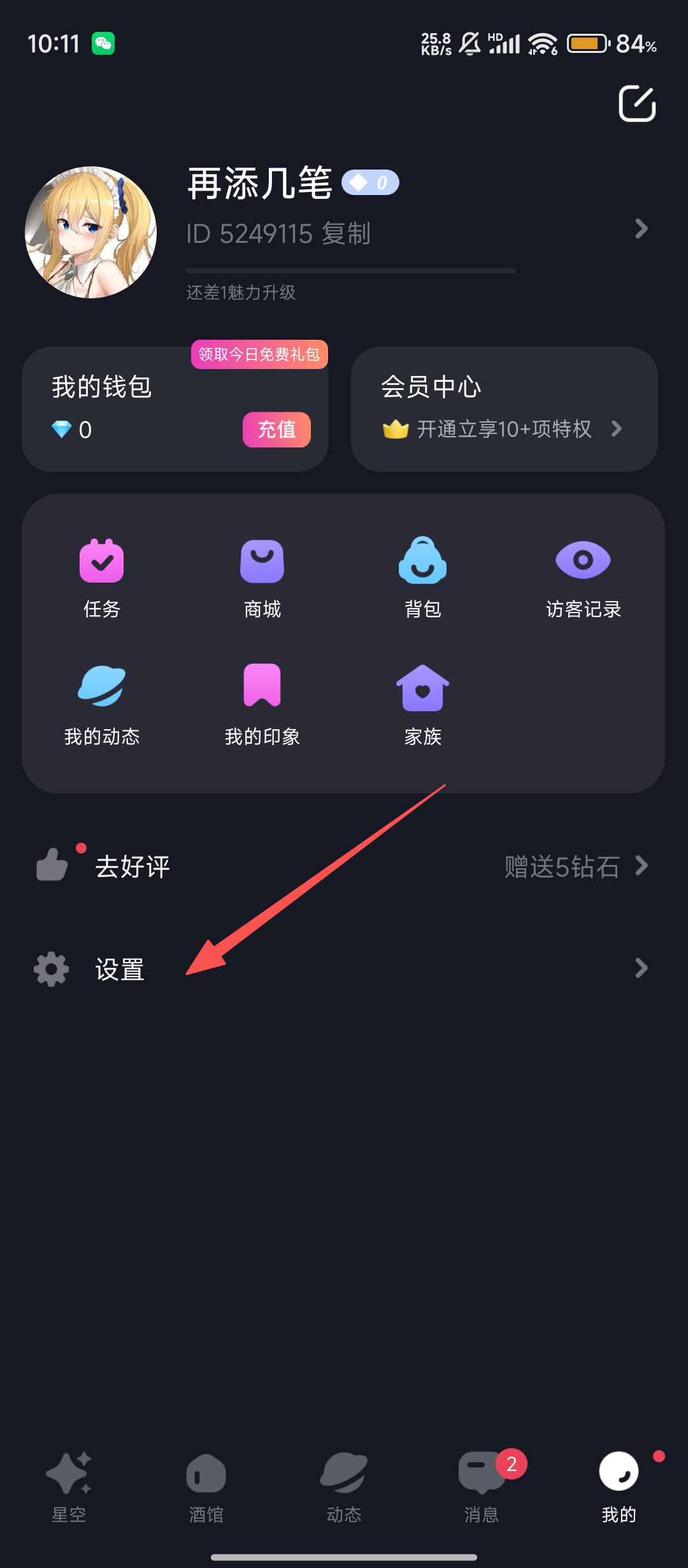 2、在个人中心界面,找到并点击【设置】,推进注销账号的流程哦。