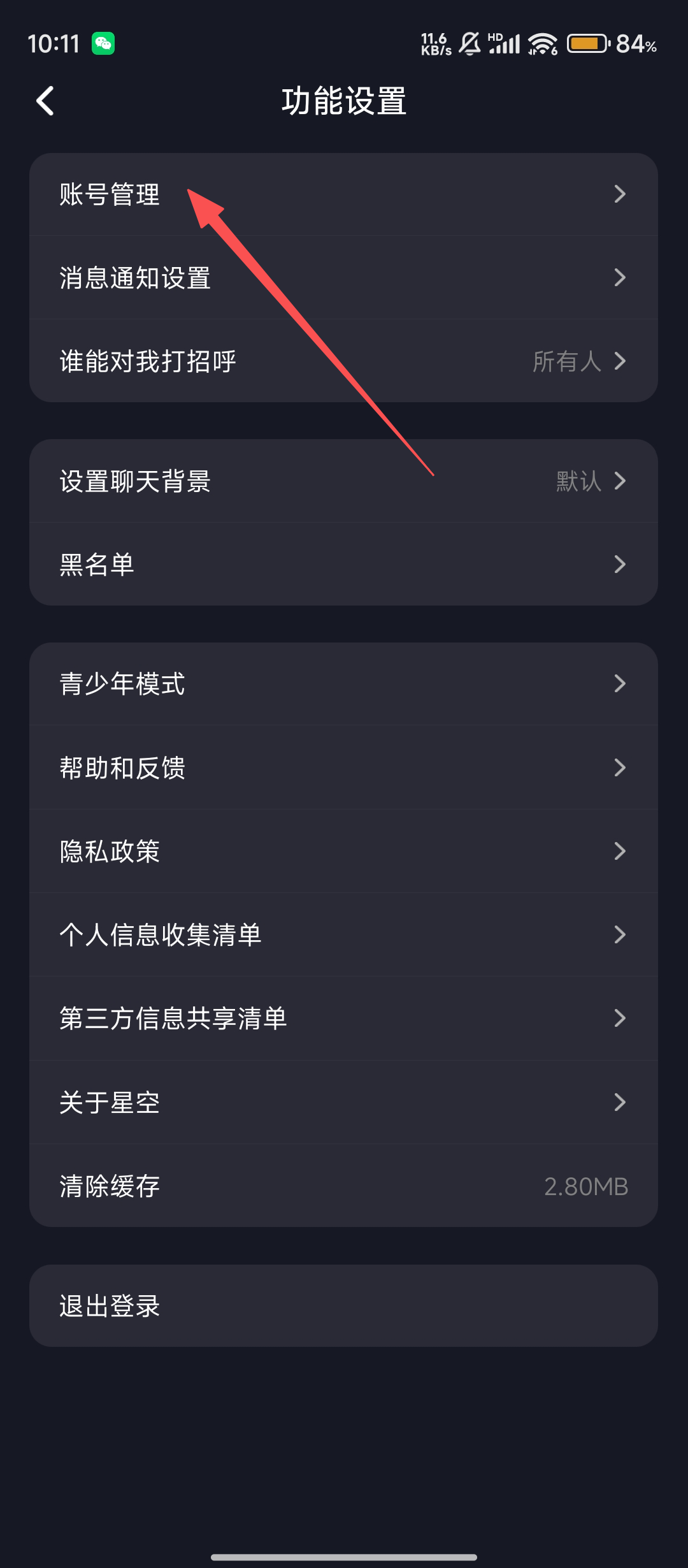 3、进入功能设置后,点击【账号管理】,就能看到账号相关的具体选项,离注销账号又近一步啦。