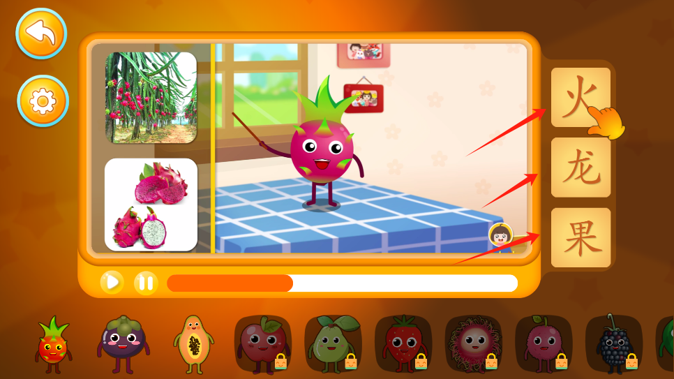 2、点击水果,可以针对性的对于水果,一种一种的学习。
