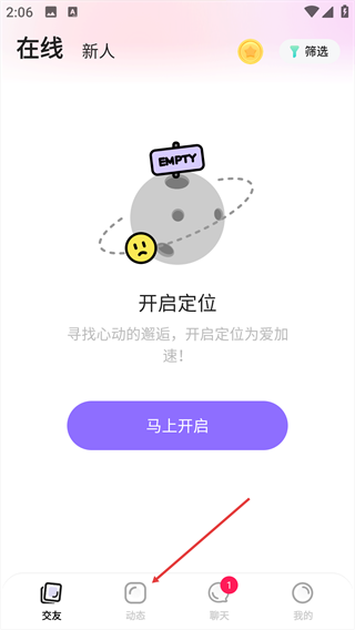 1、点击底部【动态】选项,进入动态广场页面。