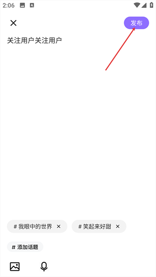 3、输入想要分享的内容,还可按需添加话题、图片或语音等元素。