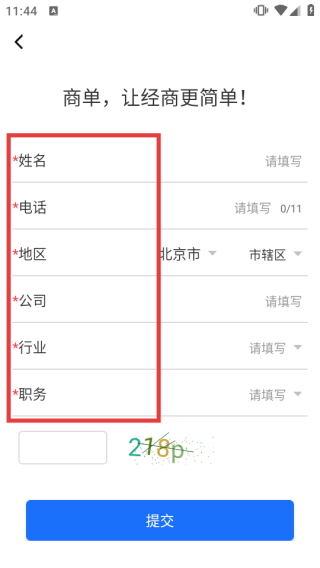 2、在注册页,依次填写带*的【姓名】【电话】【地区】【公司】【行业】【职务】等信息。