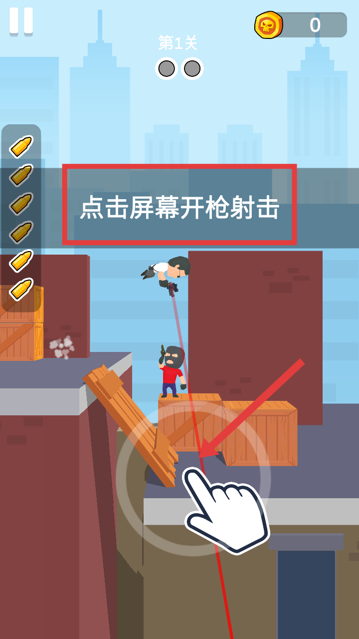 3、玩家在游戏里,根据方框内提示点击指标位置进行开枪击败敌人即可。