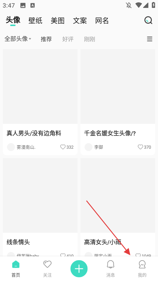 1、打开我要头像app,可以看到头像、壁纸等栏目