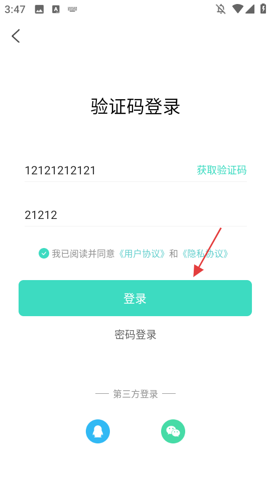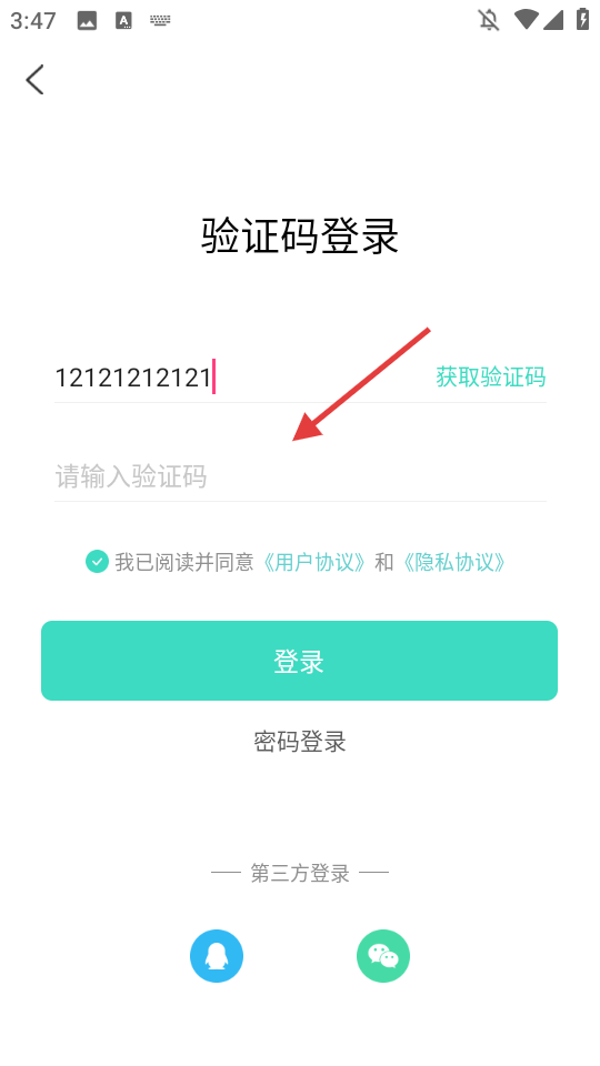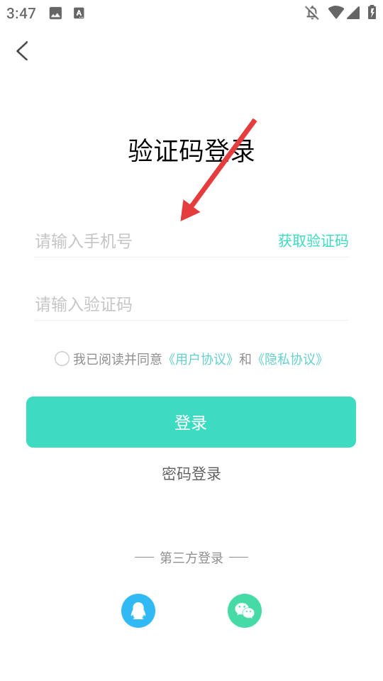 2、在验证码登录界面,输入手机号。