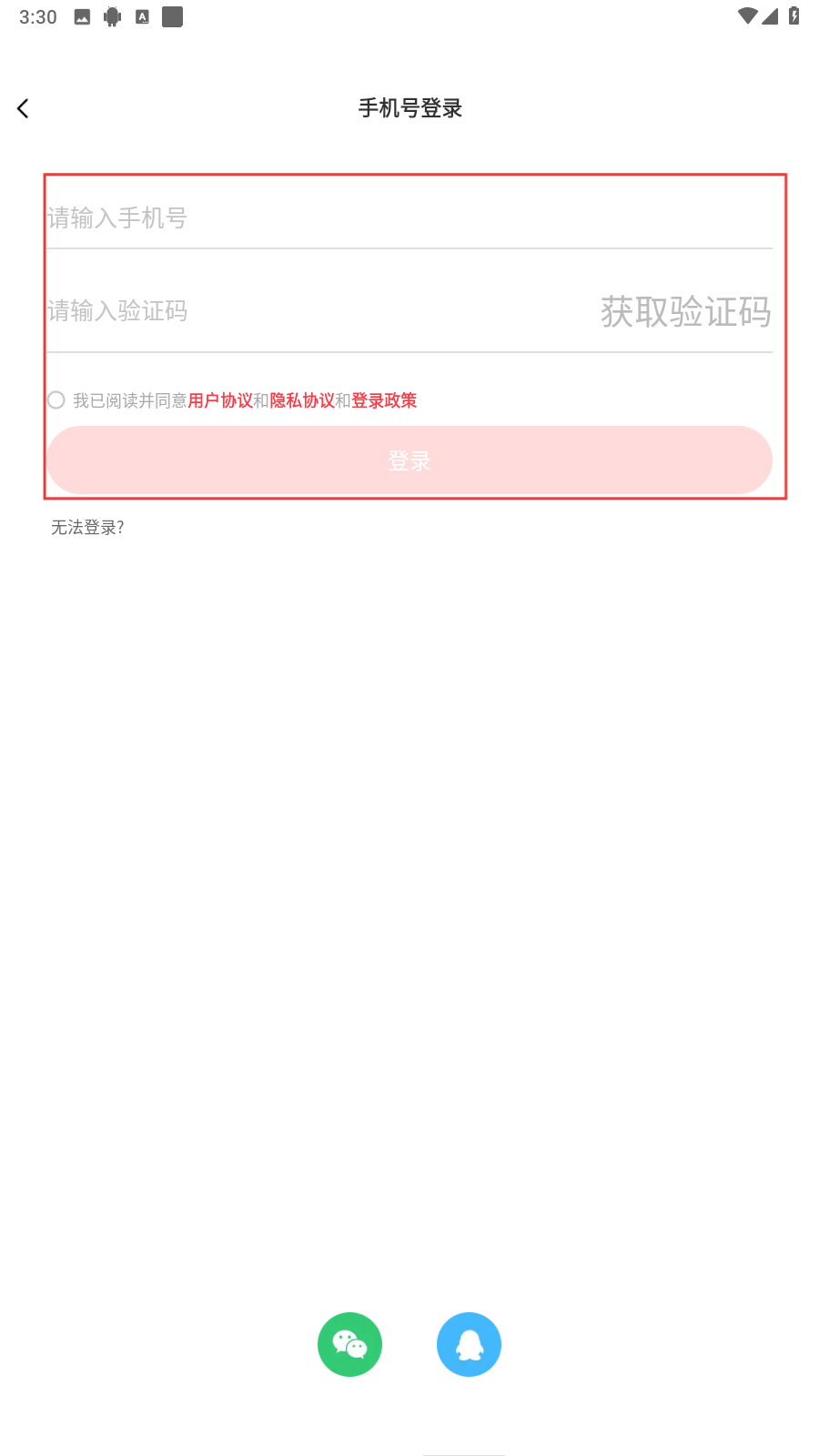 3、进入手机号登录页,填手机号、验证码,勾选协议,点【登录】即可进入。