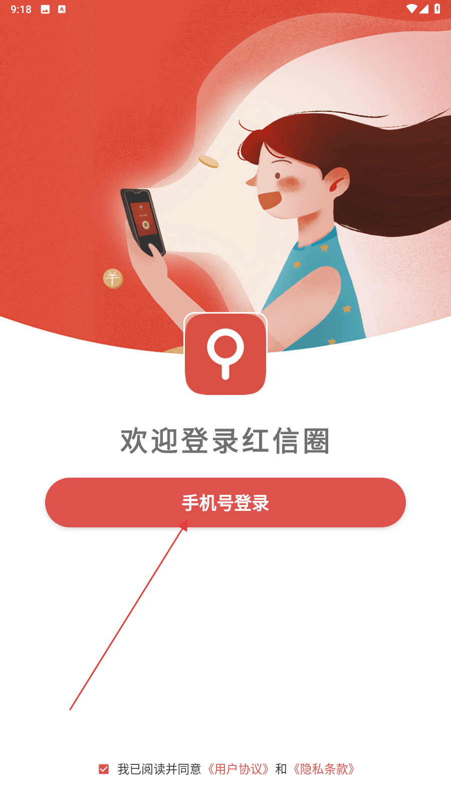 1、阅读【用户协议】【隐私政策】【红信圈发布协议】后,点击【同意】继续使用软件。