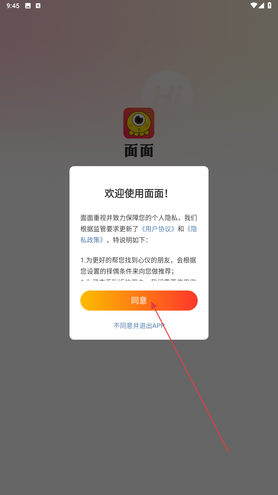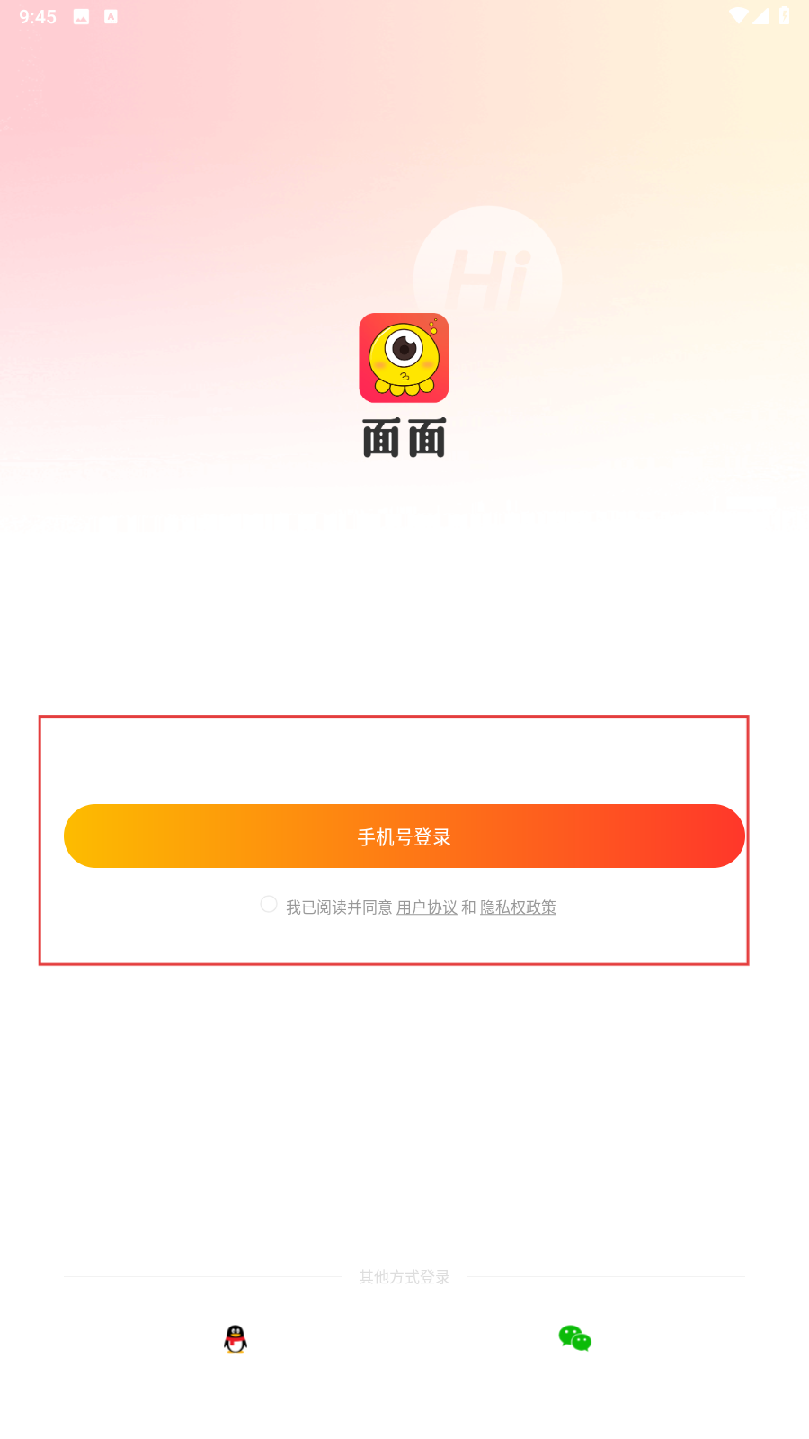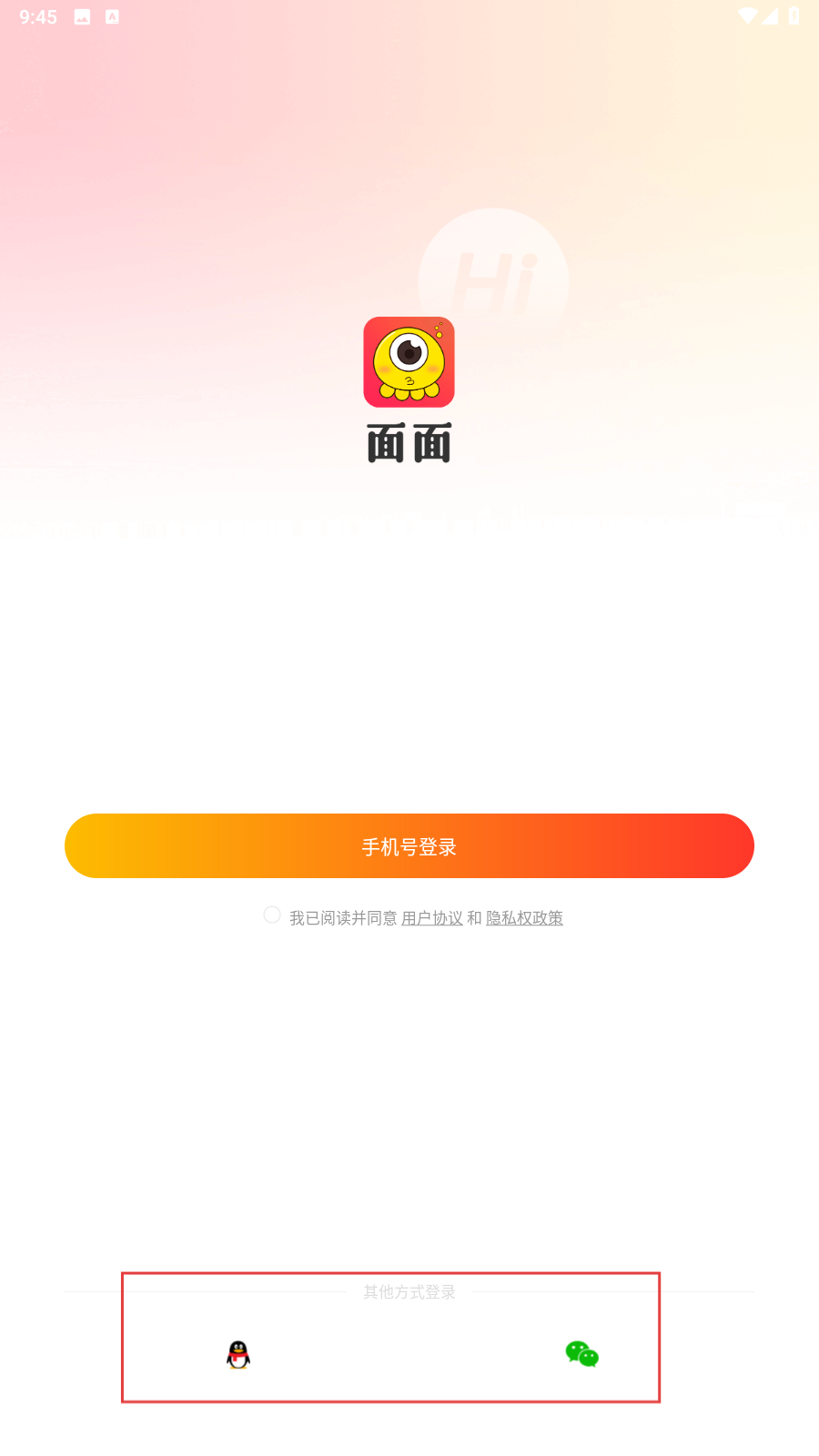 1、阅读面面【用户协议】【隐私政策】,点击【同意】进入登录页。