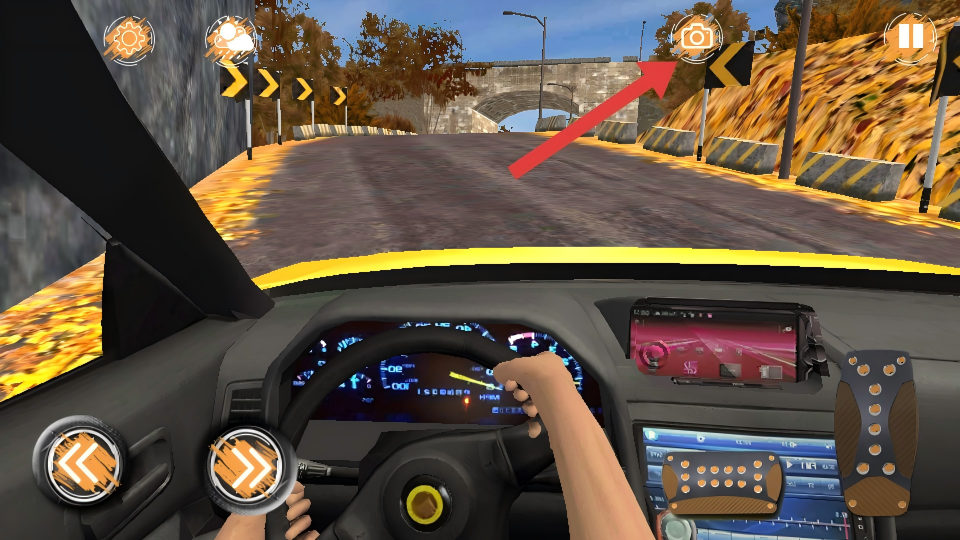 4、若想切换视角,获得不同驾驶体验,点击红箭头所指的【相机】图标,调整到合适的视角继续游戏。