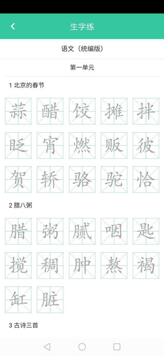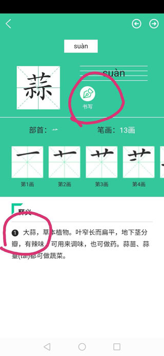9、点击每个生字,再点击书写,查看书写笔顺和生字组词。
