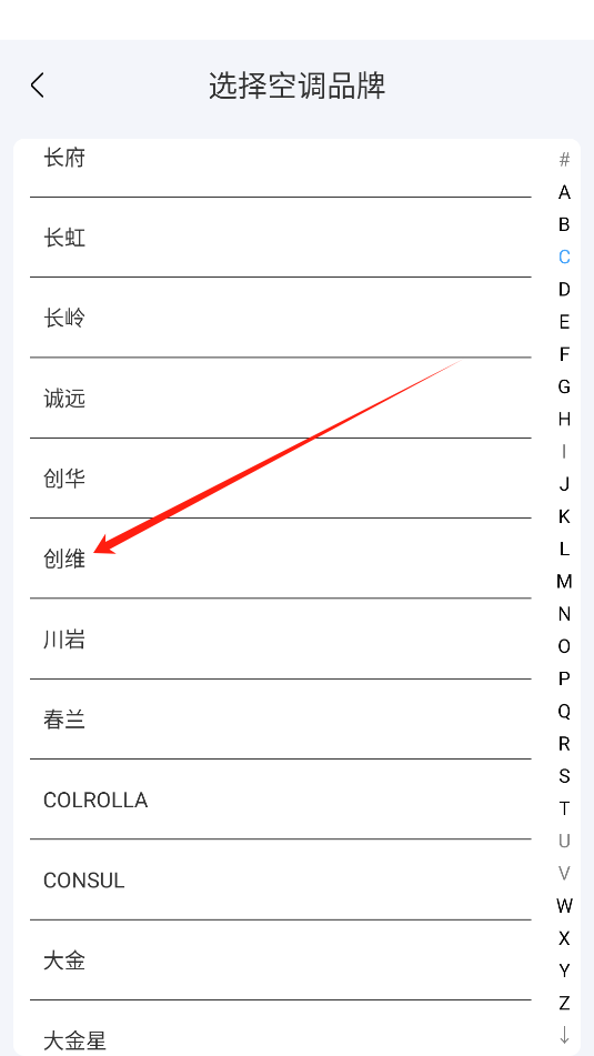 2、选择自己家里的空调品牌。