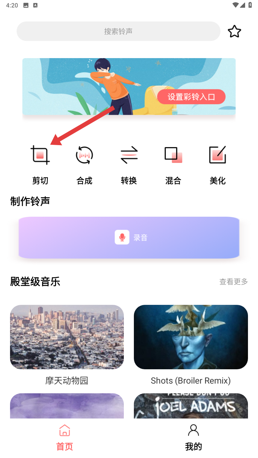 1、打开APP,点击【剪切】功能,进入铃声剪切制作流程,开启专属铃声的制作之旅吧。