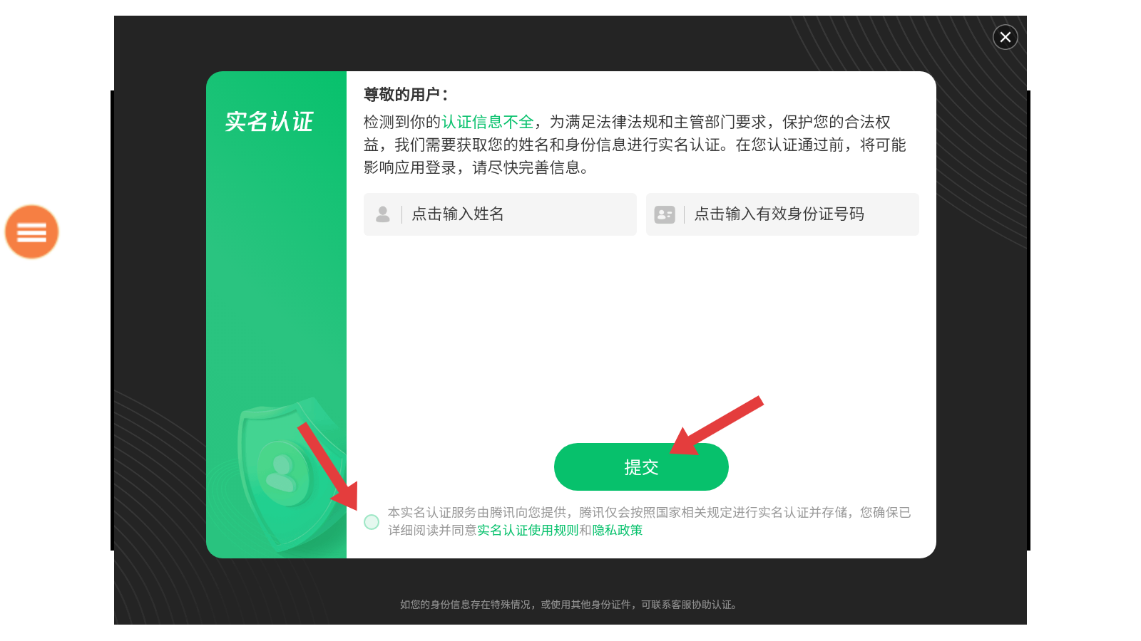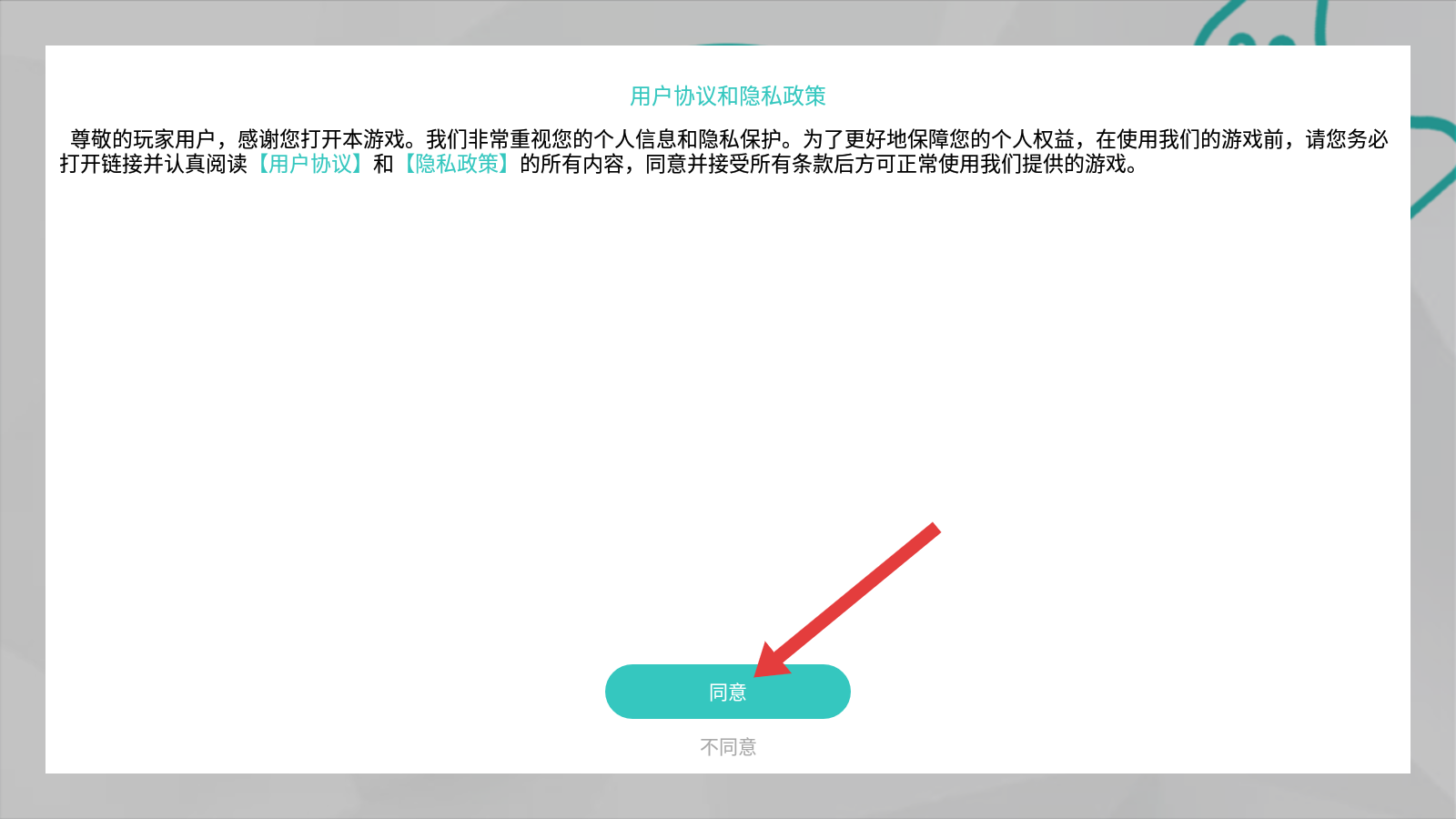 1、玩家打开游戏后,点击【同意】进入实名认证界面。