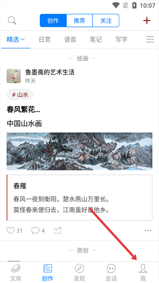 15、精选创作:每日推荐优质用户原创内容,涵盖写字、语音、音乐、笔记、原创、新诗、配图、绘画、视频、篆刻、随笔、故事等多种形式。
