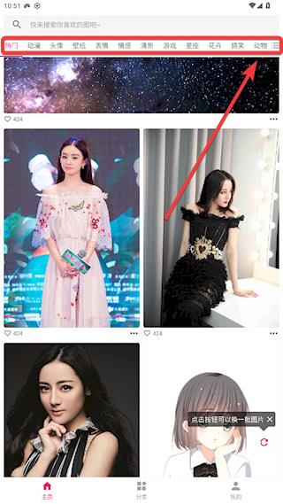 5、精选分类:涵盖壁纸、表情、头像等 30 余分类及数千子类的图片专辑。