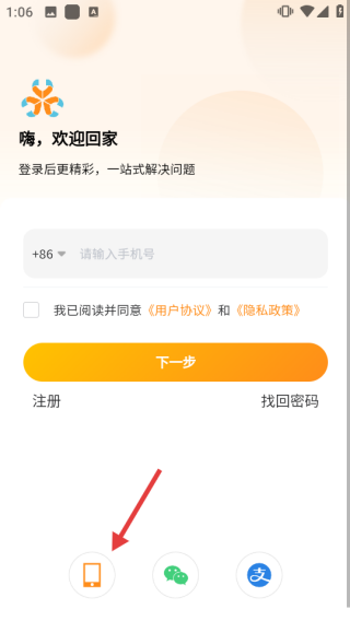 1、在登录页,点击手机图标,切换到账号密码登录模式。