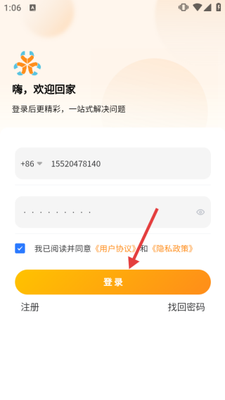 3、填好信息并勾选协议后,点击【登录】按钮完成登录。
