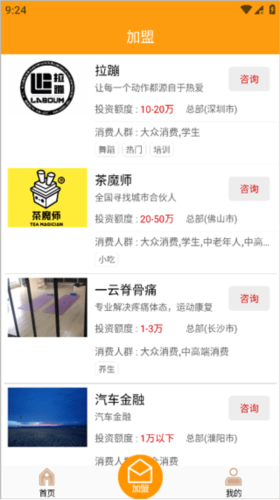 爱加盟APP是一个专业的创业加盟对接平台,汇聚了海量真实可靠的商机项目,让创业者能免费、便捷发掘心仪的创业项目,帮助招商企业实现品牌加盟信息的广泛传播和精准触达,覆盖加盟、招商、品牌加盟、招商加盟、加盟代理等场景,支持留言、在线通话等多种渠道直接与意向品牌招商方进行高效沟通。
