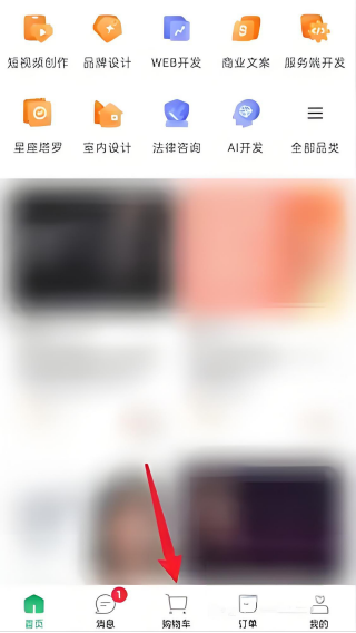 1、进入首页,点击底部【购物车】查看商品。