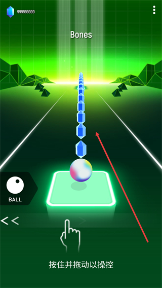 3、游戏时按照提示【按住并拖动】以操控小球,跟随节奏前行。