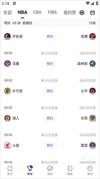 1、NBA赛程聚合季前赛、常规赛、季后赛等赛事信息,支持预约推送,助您实时掌握动态,不再错过精彩比赛。
