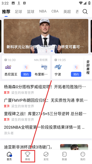 1、在首页底部导航栏,找到【赛程】选项并点击,即可进入赛程页面,查看各类赛事安排。