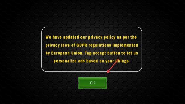1、游戏开始时,若弹出隐私政策更新提示,点击【OK】按钮同意,以便进入游戏。