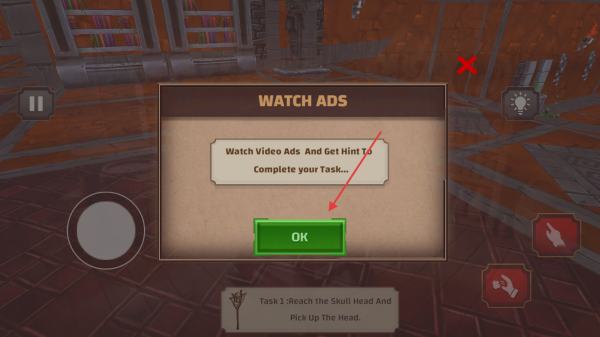 3、遇到难题时,可点击右上角灯泡图标获取提示,点击【OK】按钮获取提示信息。