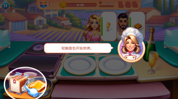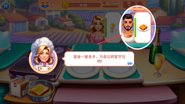 2、观察顾客需求(如男士顾客需要烤面包),按提示进行操作。