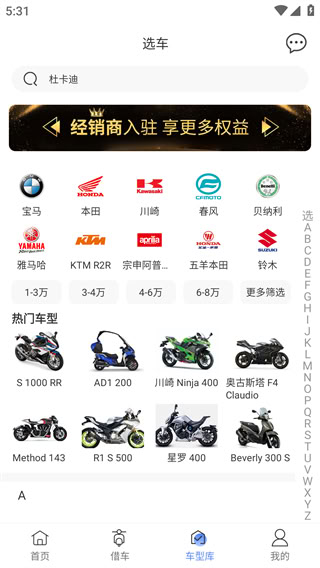 5、车型库涵盖多款式、多价位的摩托车详情,供用户浏览。