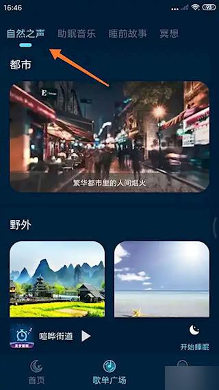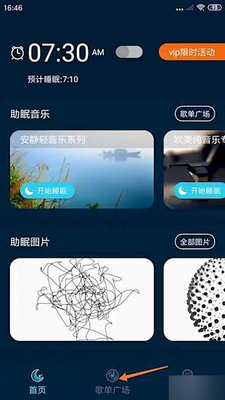 1、点击打开美梦睡眠软件,点击下方的【歌单广场】。