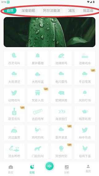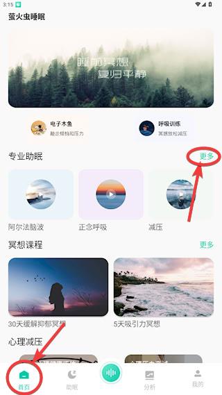 1、进入首页,点击专业助眠更多,可以看到丰富的白噪音分类,可自由选择使用