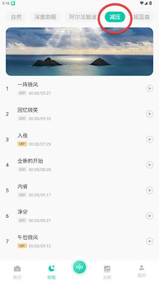 2、点击深度睡眠,有丰富的音频资源,帮助放松身心,快速入眠