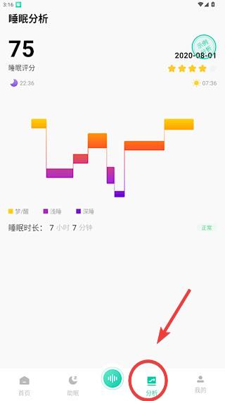 3、睡眠检测:通过手机传感器检测睡眠时的动作和声音,判断睡眠状态。手机需放枕边,可开飞行模式。