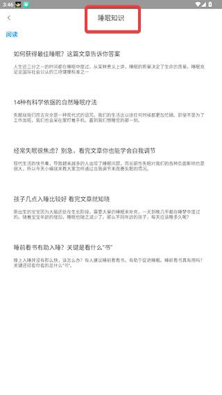 3、点击【睡眠知识】可以看到丰富的专业知识