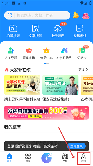 登录状态下,系统将自动记录并同步您的错题和收藏题目,据此精准定位薄弱环节,实现高效复习与备考。