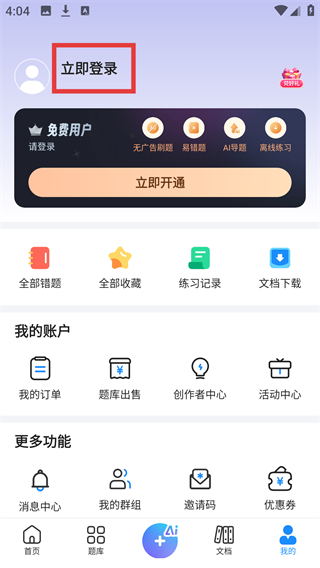 2、进入【我的】页面后,找到上方的【立即登录】按钮并点击,进入账号登录的相关操作界面。