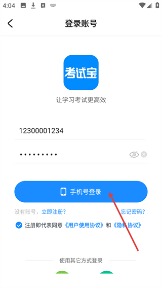 4、填好【请输入手机号码】与【请输入密码】的内容,勾选协议后点击【手机号登录】按钮,完成账号登录操作。