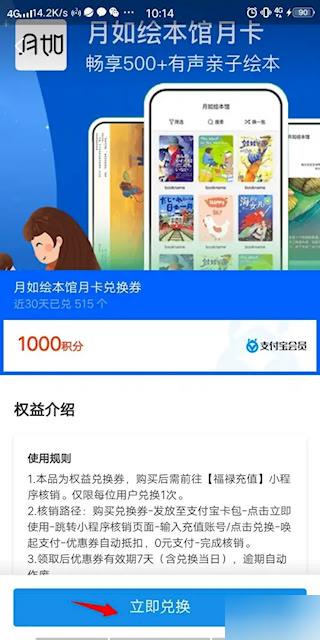 5、 找到并点击“月如绘本馆月卡兑换券”。