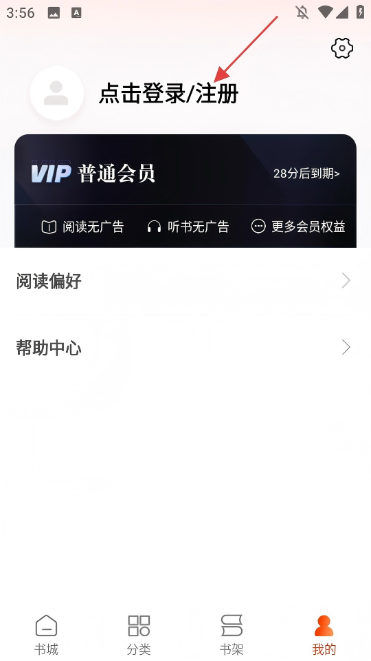 2、在个人中心页面点击【点击登录/注册】。
