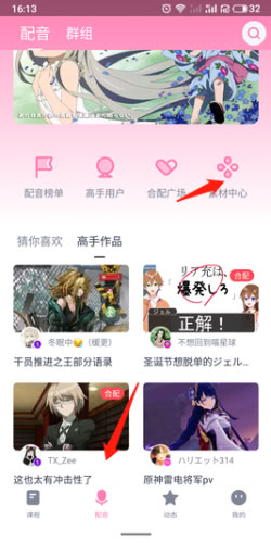 2、挑选喜欢的作品,点击 “配音” 进入合配。