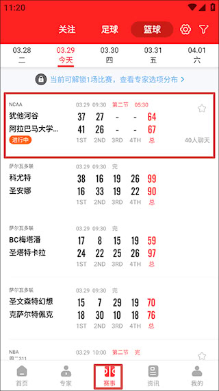 1、调启应用,浏览至“赛事”专区,甄选红色标注赛事入口,正在进行赛事一目了然。