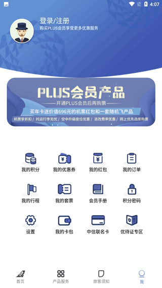 2、会员服务——支持中国联合航空会员注册登录,便捷管理订单、红包和乘机人信息。