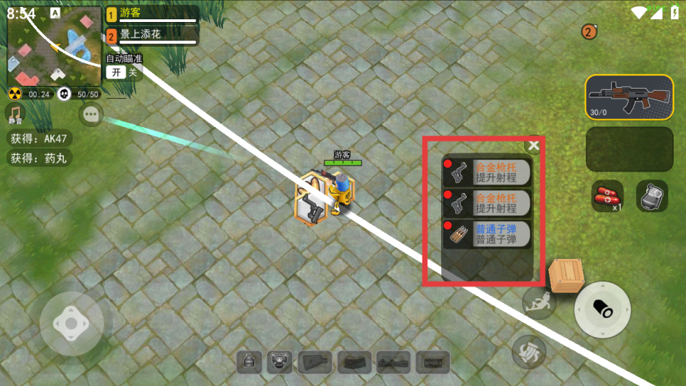 4、打破木箱后,捡取“合金枪托”“普通子弹”等道具,点击对应选项装备,强化武器提升战力。