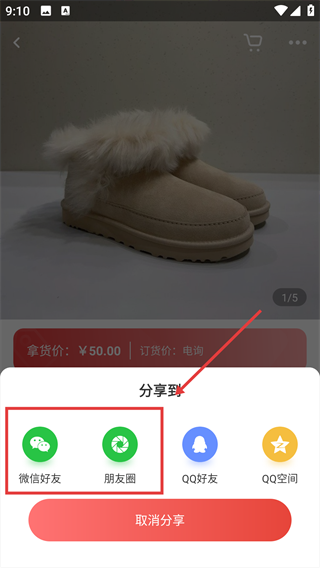 4、在分享界面,选择【微信好友】【朋友圈】等渠道,完成分享操作。