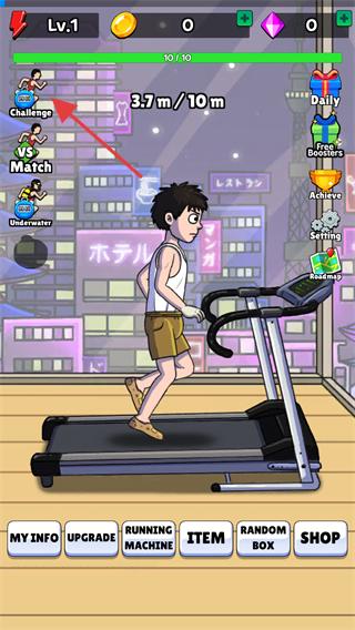 1、开局点击【TouchtheScreen】,进入游戏主界面,开启跑步挑战。