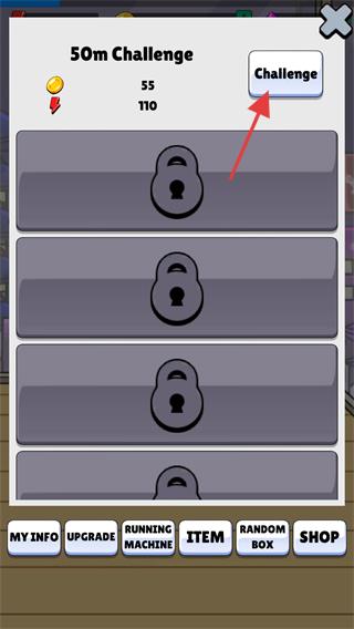 2、在【50mChallenge】界面点击右上角【Challenge】按钮,消耗对应资源开启50米赛跑挑战。